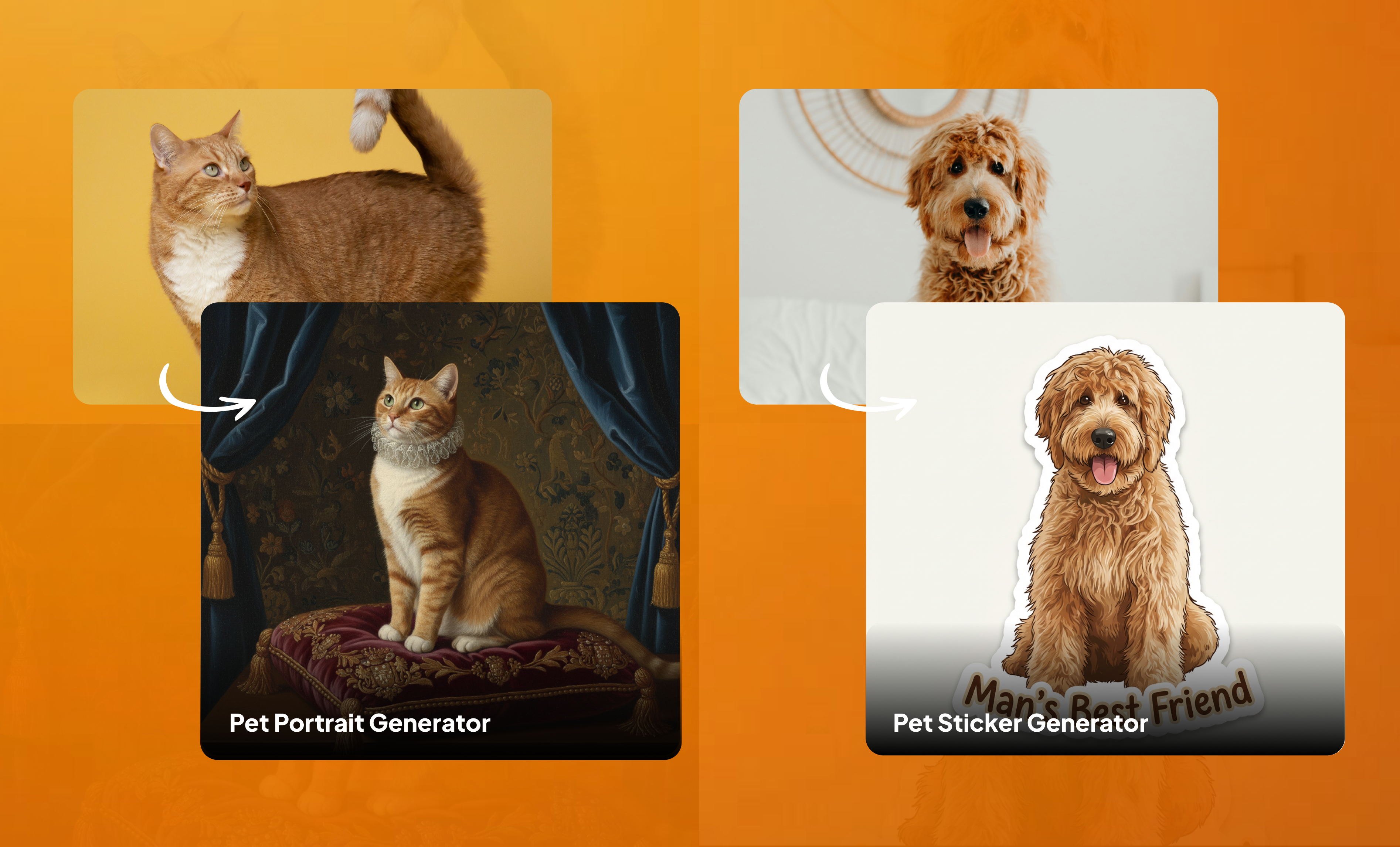 - Pet Portrait Generator: Reimagine your pet as the subject of a classic, Renaissance-style painted portrait. Generate regal, museum-worthy pet art that makes the perfect gift, print, or profile picture.