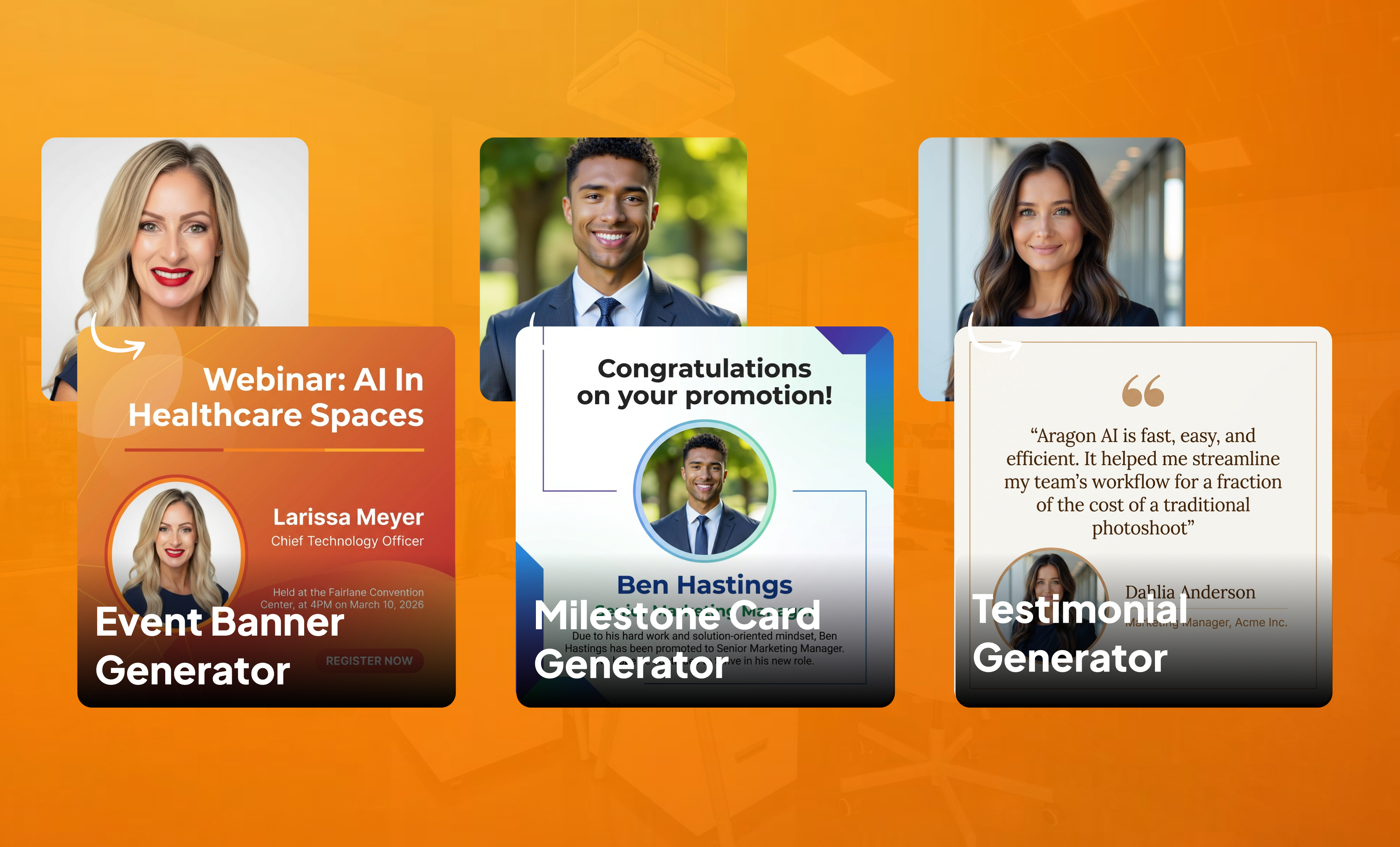 - Testimonial Generator: Turn customer reviews and client quotes into polished, shareable testimonial graphics that build brand trust and boost social proof.